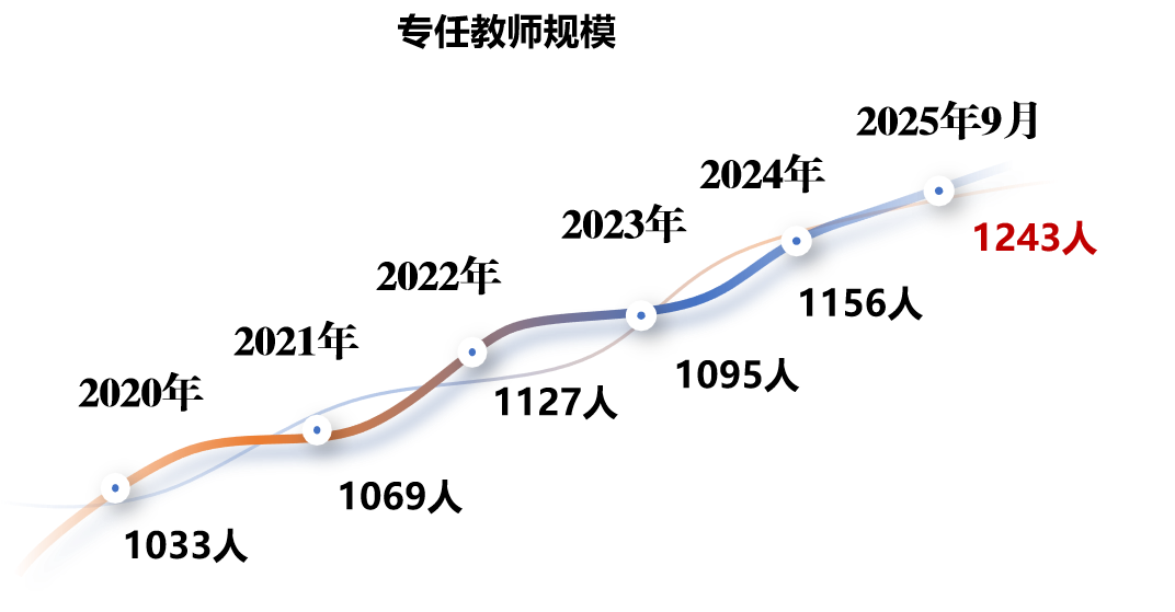 ● 专任教师由1033人增长至1243人,增幅达20.3%;