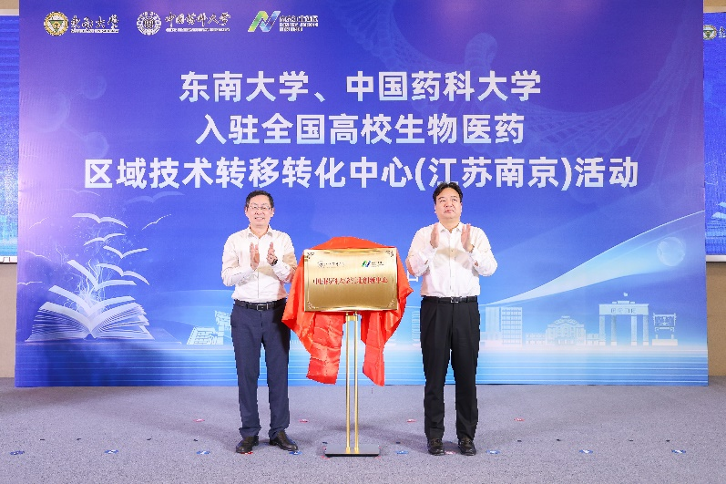 戴建君书记与陆卫东书记共同为中国药科大学江北创新中心揭牌