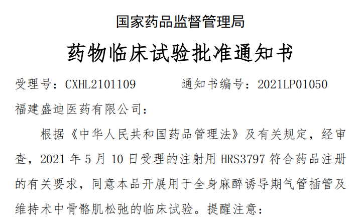 姜正羽教授合作研发注射用HRS3797获1类新药临床批件