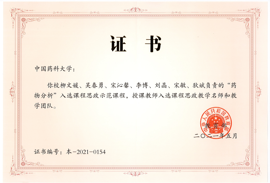 课程与教材建设扎实推进。拥有国家级一流本科课程5门、教育部课程思政示范项目2门、江苏省一流本科课程9门、江苏省产教融合一流本科课程3门。1人获首届全国教材建设先进个人称号,2本教材入选教育部生物制药领域战略性新兴领域重点建设项目,3本入选江苏省重点教材,4本入选高等教育出版社“十四五”医学规划新形态教材。完成《药物分析》《药物化学》《药物制剂产教融合型课程群》知识图谱建设。