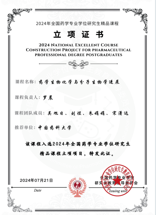 2024年全国药学专业学位研究生精品课程