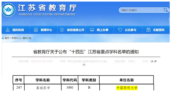 强化学科建设,推动内涵式发展。学科建设坚持以“基于新靶标和新技术的创新药物研发”为特色,持续夯实医学学科体系根基,以生理学与病理生理学、医学药理学、医学生物化学与分子生物学、医学免疫学和病原生物学5个基础医学主干二级学科为支撑,推动学科内涵式发展。学院倾斜优势资源,全力支持基础医学学科建设,2020年通过基础医学一级学科硕士学位授权点专项评估,2022年获批江苏省“十四五”重点学科。基础医学二级学科——药理学与毒理学ESI排名进入全球前万分之一。
