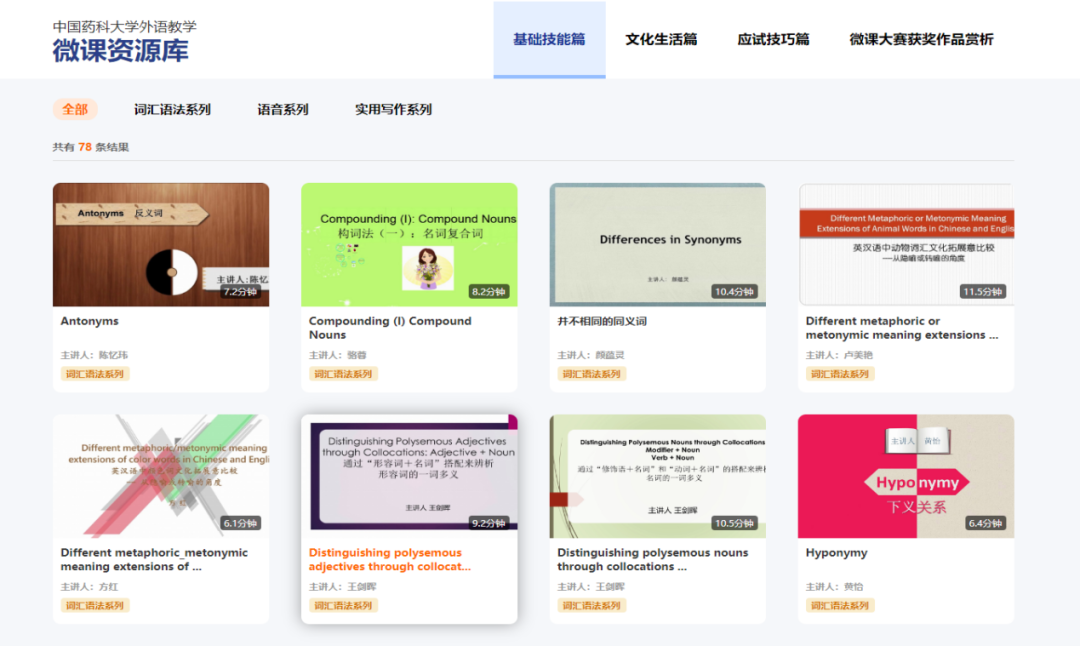 “药学英语”课程建设取得重大突破,2020年获批校级一流本科课程培育项目,2021年获得省级一流课程;《药学英语》第5版获得江苏省首批本科优秀培育教材;2023年国家级规划教材《药学英语》第6版出版,标志着学院教材建设达到新高度。