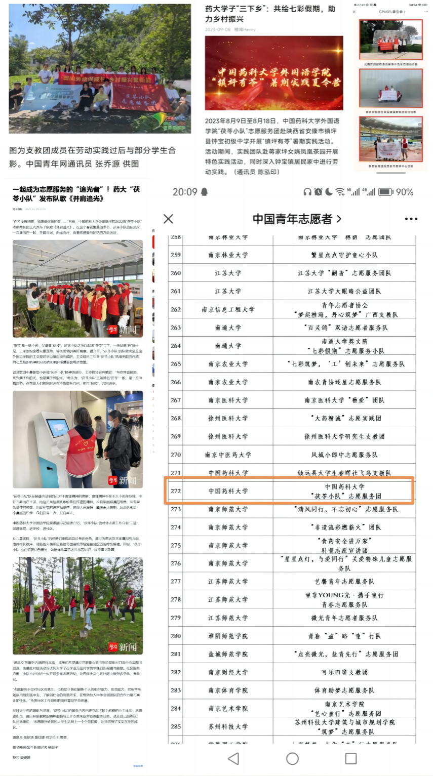“茯苓小队”创建于2020年9月,五年来从最初的学业帮扶团队发展成具有30余名固定志愿者、1000余人次参与的志愿服务团队,累计志愿服务时长超过5000小时。团队服务范围从学业促进拓展至关爱儿童、敬老孝亲、社区服务、乡村振兴等多个领域,构建起“党建引领+志愿服务+专业赋能”的新型组织模式,形成“人人愿参与、时时可奉献、处处有温度”的志愿服务生态。“茯苓小队”的事迹先后被中央电视台、新华社、《光明日报》、《中国青年报》、学习强国等主流媒体报道,荣获江苏省大中专学生志愿者暑期文化科技卫生“三下乡”社会实践活动优秀团队、江苏省高校青年志愿服务项目大赛银奖等多项荣誉称号,展现出外院学子在社会服务中践行初心、在集体建设中锤炼党性的良好风貌。
