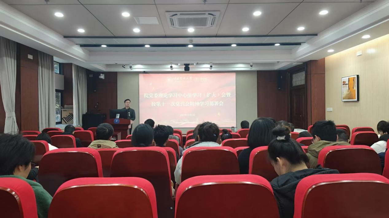 12月5日,理学院党委召开理论学习中心组学习(扩大)会,专题学习学校第十一次党代会精神。理学院领导班子、各党支部支委参加学习,会议由理学院党委书记周新虎主持。