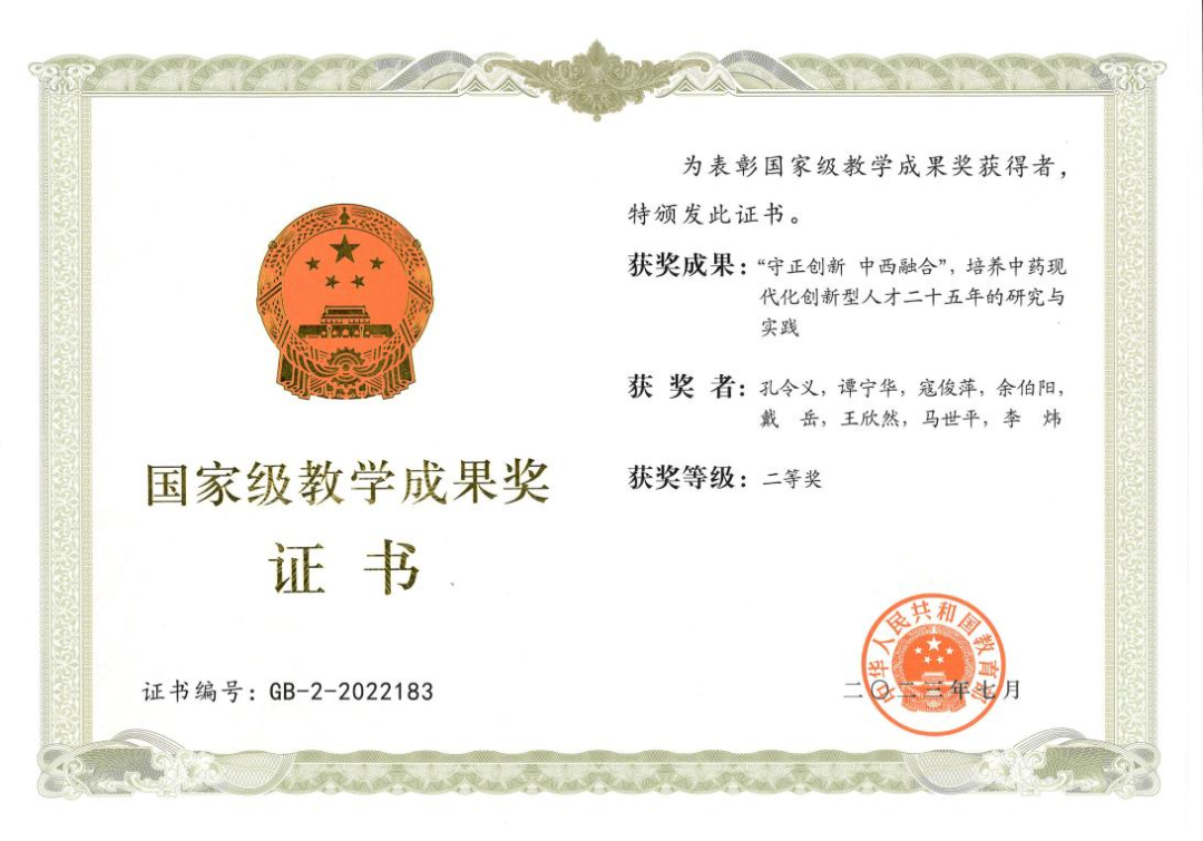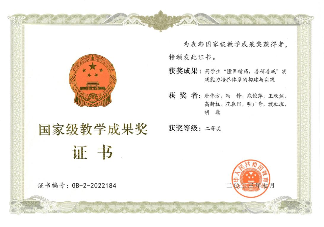 获国家教学成果二等奖3项,囊括本科教育、研究生教育两个层次的药学类教育教学成果;获江苏省教学成果特等奖1项,二等奖4项。【人才培养】