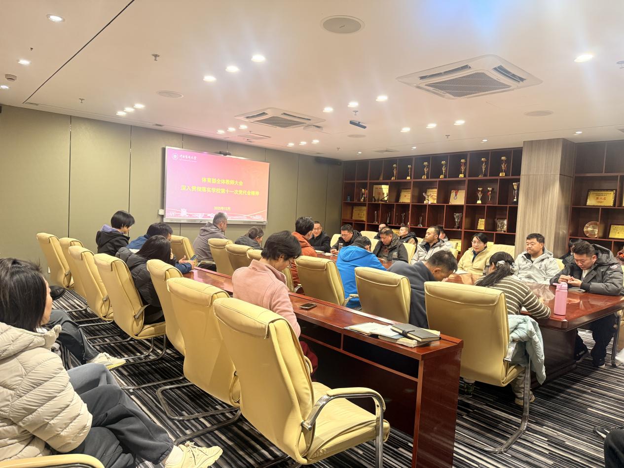 会议要求全体教职工立足岗位,将第十一次党代会提出的宏伟目标与战略部署,切实转化为推动我校体育工作高质量发展的具体思路、扎实举措和实际成效,凝心聚力,开拓进取,谱写我校体育事业发展新篇章。